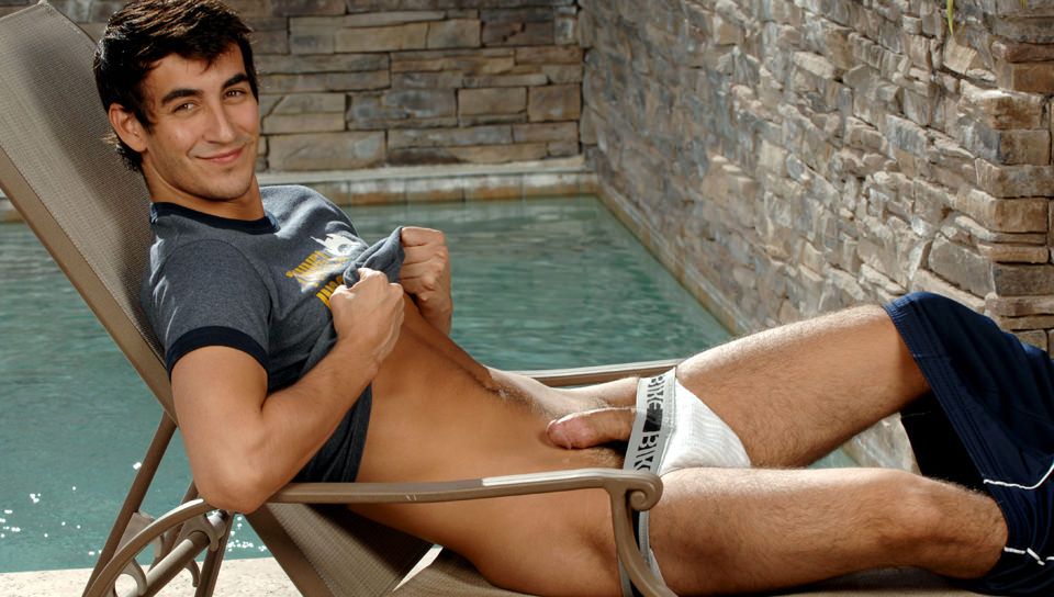 You can only run so far until you need to take a break and shade is always a welcoming sight on a hot sunny day. Jeremy decides to stop for a breather and sees that he is the only one around. All by himself, he decides to take his cock out and drop his shorts.