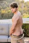 Derek masturbates his hard rod outdoors on a sunny afternoon
