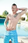 Kaydin's huge dick enters Jaxon from behind on a pool patio