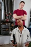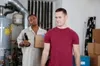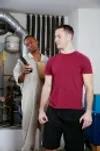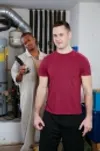Interracial action in the garage with the short black mover!