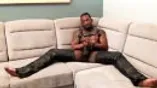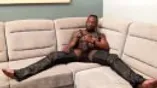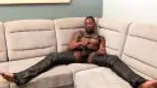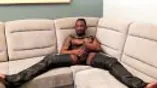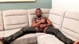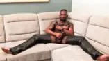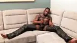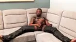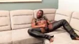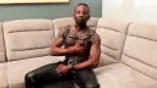 Black tattooed stud Rio masturbates while cladded on leather