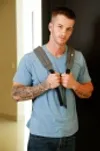With very few rooms available at the hostel, travellers Quentin Gainz and Tom Faulk are sharing a room, even though they are total strangers. Madam Hostel has already set them up to ensure that they get acquainted with a little trickery, and as the guys get settled into their room, the Madam\'s plan begins to take shape. Both guys find notes under their pillows. Tom\'s note reaffirms his suspicions that Quentin is interested in his cock, and to his credit, Quentin\'s note appears to be from Tom inviting him to do just that, so when Tom falls, Quentin\'s curiosity gets the best of him and he takes a peek under the covers, spying on Tom\'s nice cock resting up against his leg. Quentin takes it in his hand and slowly massages it. Tom stirs but doesn\'t, and his cock swells up semi-hard. Quentin moves his head closer to have a taste just as Tom'sup. Petrified, Quentin freezes, and Tom asks him what he\'s doing. Assessing the situation, Tom realizes what\'s happening and taunts Quentin, asking him if he wants this cock. Quentin nods in the affirmative and Tom tells him to get started. Quentin wastes no time getting to it, downing Tom\'s cock in one gulp, as Tom gags him. Sitting up, Tom gets into it as Quentin strokes himself while sucking on Tom\'s balls. Tom rocks Quentin back up against the wall propped up on a desk as he eats Quentin\'s ass before sliding his cock inside his stranger roomie. Quentin takes the dick like a pro, as Tom gives him with every inch of his giant cock. Tom folds Quentin over onto his side as he continues to pound away, coming close to bursting as Quentin loses his nut all over himself, before Tom blasts him with his load. Smiling in the aftermath, the guys realize that they\'ve been set up, though neither seems to really mind, after the fact.