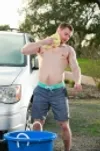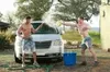 Markie and Austin get dirty after washing their car