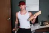 Carter Woods tries the food delivery guy's footlong
