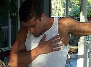 Remember Cody, the 25 year old hung hunk we showed you a few months ago? Well, he's back, and looking as good as ever.This dark haired stud showed up at the house to get in a workout before leaving for a photo shoot. As Cody stretches his rippling muscles while outside on the front porch, he decides to strip down and enjoy the feeling of the spring breeze on his balls.