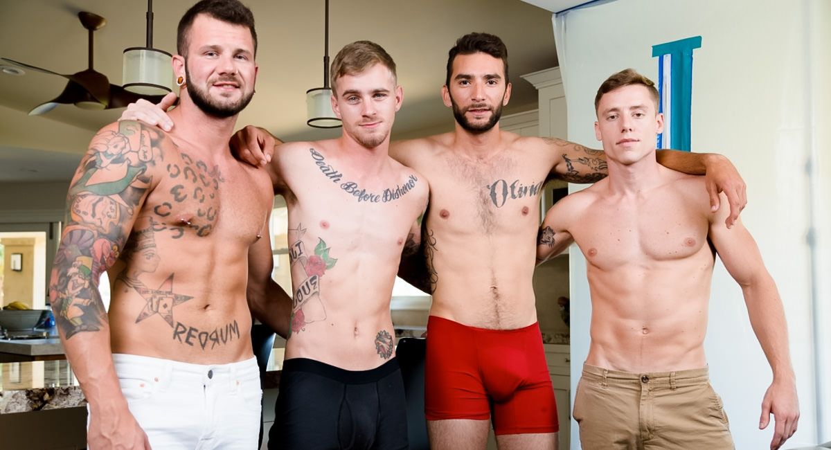 Having finished the job on location, repairmen Ryan Jordan and his partner Brian Adams decide they have enough time for a quickie, but when Johnny Hill and roomie Justin Matthews catch them, they realize their work load just doubled. Johnny and Justin waste no time testing their skills and Ryan and Brian prove that they're the right guys for this job. And even though the AC is freshly fixed, the temperature heats up quickly as the four of them fuck and suck until the job is done completely.
