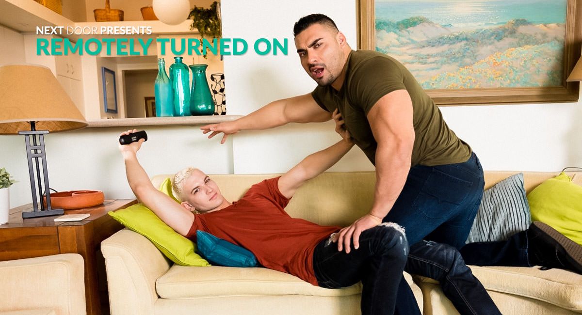 With only one big tv in the living room and two different shows, it sure seems like roomie's Derek Wulf and Jay Dymel are in need of a compromise. Derek isn't about to just let Jay take over the living room, but Jay is pretty intent on watching his program. Derek asks Jay what he's gonna do for him, and Jay hesitates, unsure if Derek is serious. Derek tells him it's been a while and asks him how he feels about servicing him in the meantime. Jay assumes Derek is full of shit, grabbing the remote from him as Derek pops up and wrestles with Jay to get it back. Jay plays keep away but Derek is more interested in something else, and when Jay looks up at him, Derek bends down and kisses him hard on the lips. Jay realizes Derek is serious about the whole blow job thing, and moments later both guys are half naked on the couch, Jay on his knees, with Derek's cock in his mouth. Derek gets rock hard as Jay deep throats him, bending him over the side of the couch and plunging his raw cock deep inside of Jay's waiting hole. Derek shows no mercy on his roommate, giving him a hard pounding from behind as he fucks Jay all over the couch in every position, finally fucking the cum out of his roomie as he pulls out and soaks him with his load. As Derek slowly works the tip back in, he tells Jay the tv is all his, but Jay seems to have found something better to pass the time.