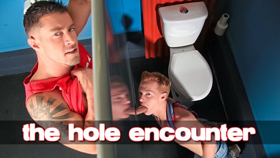All Cody Cummings is trying to do is take a simple piss after his work-out. Not looking for any trouble or entanglements. But Billy London has other ideas. While he didn't follow Cody into the locker room specifically, he's been known to try his luck there once or twice before, and wouldn't you know it- today he's struck paydirt. He and Cody make eye contact as he enters the stall and he suspects that Cody is willing, so he taps on the hole, demanding Cody's cock, and after a short time deliberating, Cody obliges. Billy guides the cock through the hole and into his waiting mouth, as Cody emits a satisfied moan, low and rumbling. He fucks Billy's mouth like that for a while, before Billy comes out to meet face to face. Billy has his cock in his hand as he opens the door, and Cody licks his palm and begins to stroke in earnest as Billy does the same, losing his load in an unexpected spurt as Cody follows suit and blasts the floor with a load of his own, before both guys go their separate ways. Not sure who has to clean up the locker room but they're not going to be too happy.