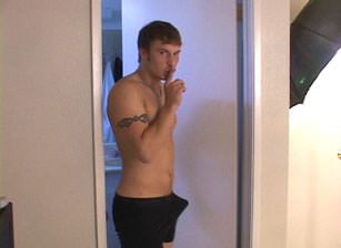 Walking out of the bathroom with a hardon like no other, Denny jumps on his friend, violently yanking him out of his comfortable slumber. Denny demands that he let him fuck him. Since Riley likes a good pounding, he agrees.