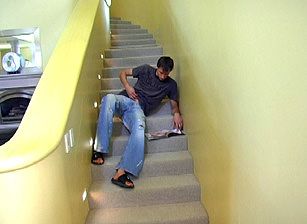 For this scene, Deni will be teasing himself on the stairs while he thumbs through a porn mag, then off to the shower he goes. Once he's does stroking himself in the shower and bath tub, Deni lays on the bed where he bring himself to an intense climax, draining his thick cock onto his stomach.
