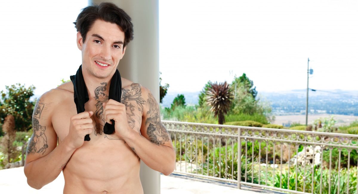Destro, a prodigal son native of southern California now living in the midwest, has a quiet intensity and a svelte frame as he walks through the rose gardens at the Next Door house. A bit reserved, he nonetheless pushes his boundaries in front of the camera, as he strips out of his tight fitting undies to reveal a lean body and a tight ass, smacking it as he strokes his cock. Leaning against the locker room stall, he plays with his cock as it stands up in full salute, the head swollen and ready to burst. Destro turns towards the wall, showing off his ass as he gives it a hearty smack, running his hands down his legs and up his side, squeezing his chest and running his hands through his hair as he lets his load fly onto the floor beneath.