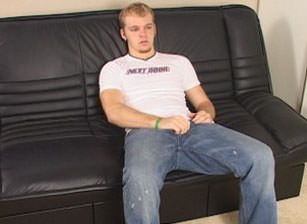Jake throws in one of his most beloved porns, which gets him hard almost instantly, but he doesn't start stroking right away, he warm himself up with some rubbing through his pants.