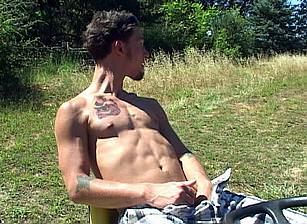 We welcome 24 year old James as he strokes himself on the riding lawnmower, showers off, then jerks himself off outside. Got to love this guys cock and cumshot.