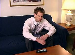First in the living room after a long day at work, followed by an early morning 'workout' while he's making coffee in the kitchen. And lastly, he relaxes in bed as he takes a load off.