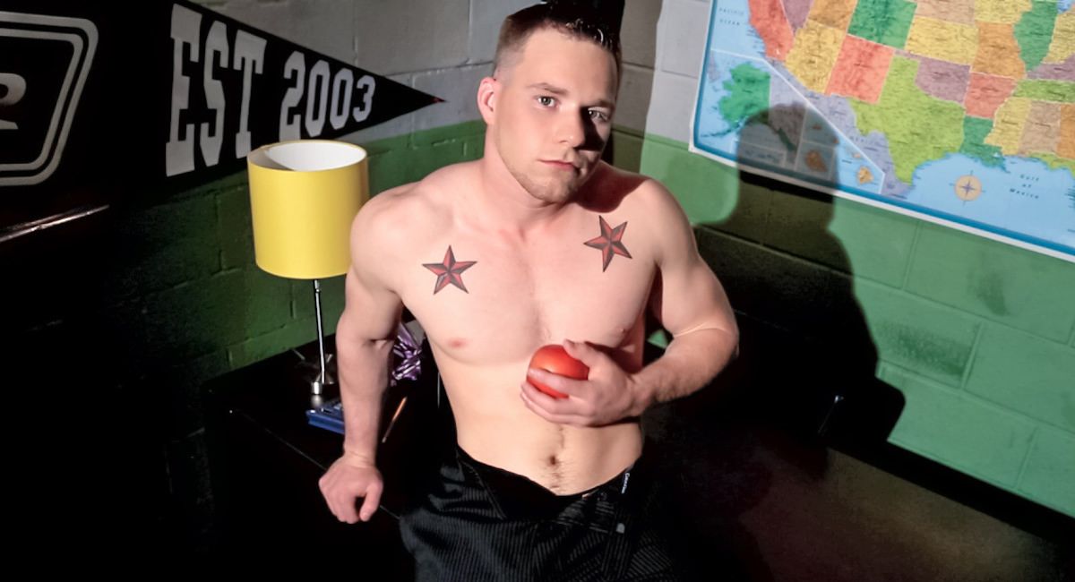 Randy is a somewhat soft-spoken guy from the Pacific NW. With wrestling in his family background and an athletic past, one thing he isn't shy of is the weight room, where he regularly can be found lifting and crunching to maintain his stellar bod. And when he's not in the gym, he can be found in the classroom, boning up on his lessons and engaging in pursuits of higher learning. But when its time to take a study break, Randy goes all in and takes it all off. Stripping out of his clothes as he sits behind his desk, he rubs his hands along his chest, feeling his muscles flex as he runs his fingers up and down his upper body. Working himself up, he unzips his pants and slowly and strips down to his underwear, taking a seat at one of the student desks as the head of his cock peeks out from the top of his waistband. Once fully naked, Randy reclines back on his desk and proceeds get down to some serious cramming, working the length of his shaft and rubbing the head with his thumb, before draining his load all over his stomach and concluding his special 'study session'.