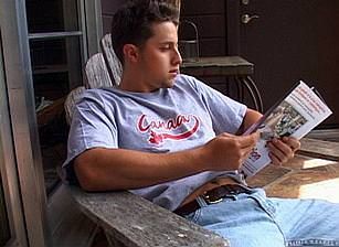As the pictures start to arouse this great looking young stud, Rey Gold slowly unzips his pants and starts to tease his hardening cock. When he realizes he might be spotted by the neighbor, he pulls up his pants and walks to the bathroom. Once in the privacy of the restroom, he strips down completely, turns on the shower and continues to stroke his cock.