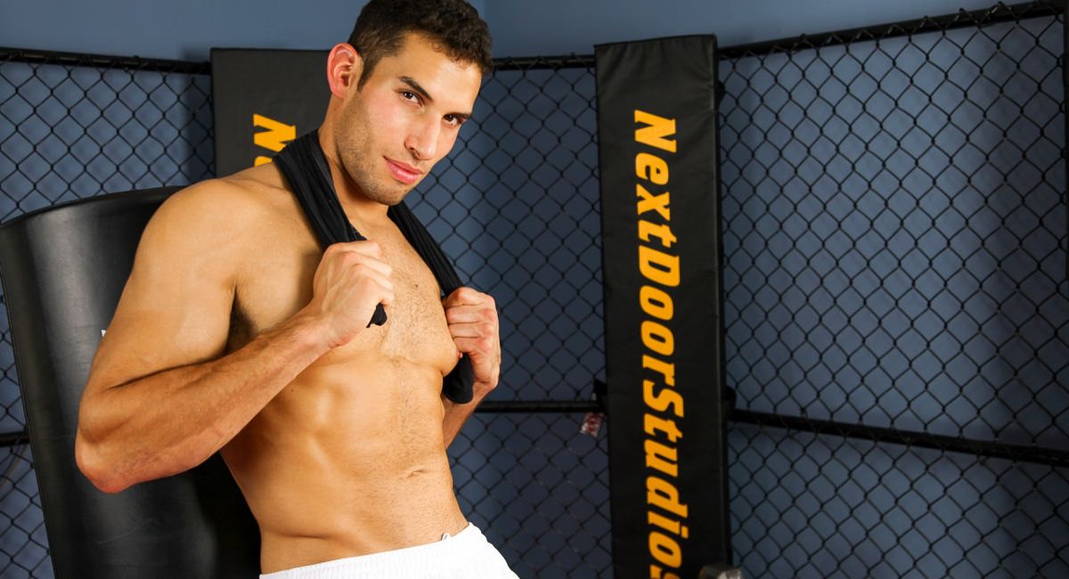 Ricky Decker is a versatile, athletic heart-throb from back east. Originally Colombian born, this DC resident is ready to please and willing to do whatever it takes. Packing more than just a mouthful, Ricky spreads his legs on a bench in the weight room after a solid work-out, pulling his gym shorts down and removing his gloves to expose his already hard cock. Ricky shows off and teases his cock before wrapping one hand around the shaft while the other plays with his balls. Standing up, he straddle steps the bench, putting a leg up and fingering his asshole while he continues to stroke himself off, and as the afternoon sun shines into the gym, Ricky launches his load down, letting it splash on the mat as he kicks his head back and exhales from the day's labors.