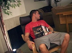 Cody flips through some pages while warming up his shaft to become rock hard. He loves stroking his dick through his shorts but decides to slide them up one leg to reveal his throbbing cock resting on his smooth calf muscle.