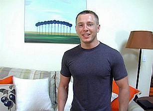 Tommy gives us a quick strip show before he crawls on his hands and knees over to your hard cock, eager to get you off. Tommy sucks, strokes and sucks it some more before you blow your balls all over his chest, turning him on so much that he shoots a steamer of a cum shot so powerful that he even squirts cum all the way to his ear. So you could say he's up to his ears in jism!