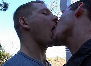 Brady Rey saw Tommy kicking back on the porch and decided to take charge and get some action out of him. Once Brady gets to Tommy, they immediately start kissing and rubbing each other. The clothes come off quickly and Tommy's sucking dick just as soon. Brady switches and sucks on Tommy before he bends over and demands Tommy have no mercy on his ass.